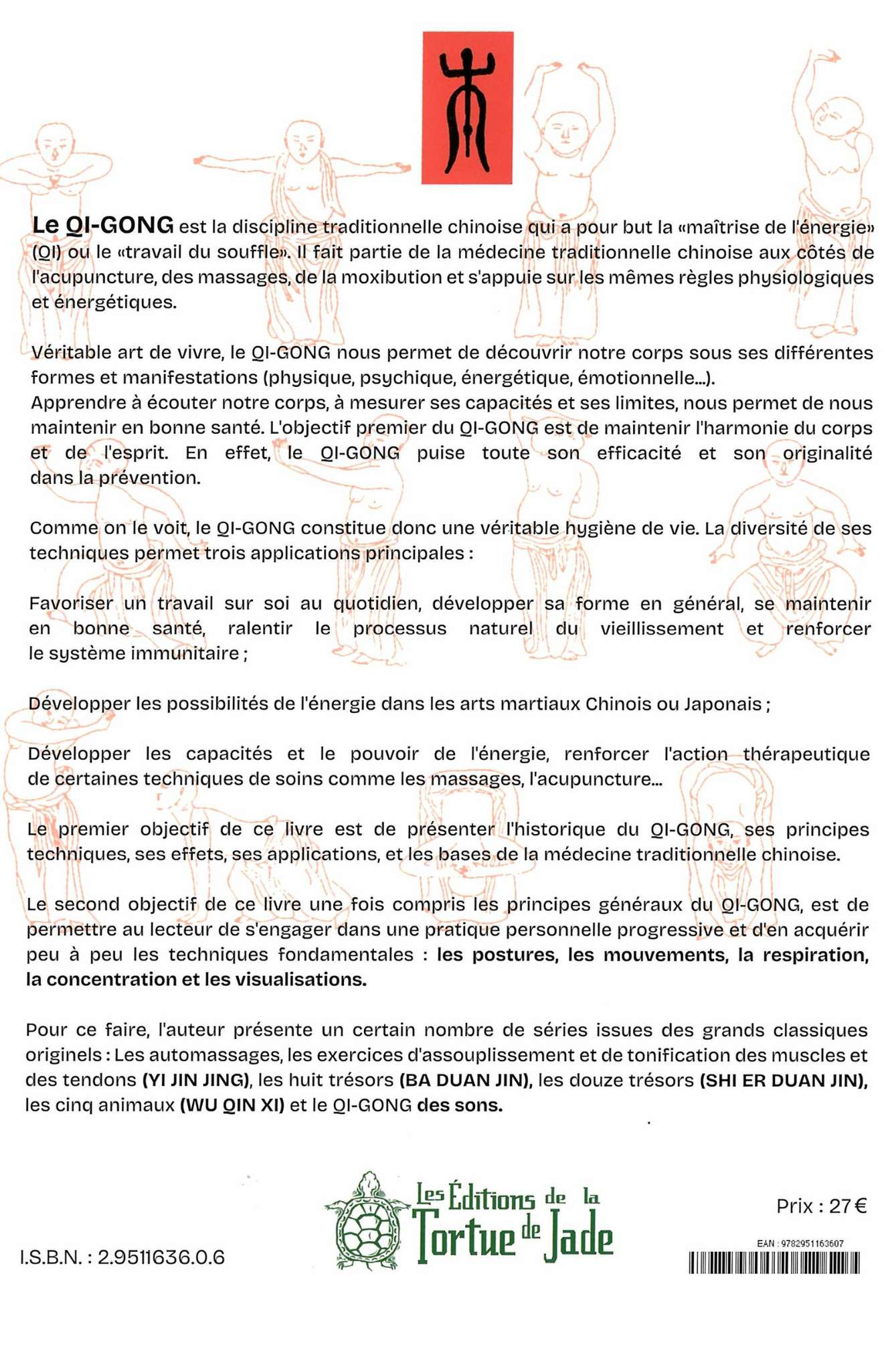 Découvrez et pratiquez dans cet ouvrage : - les automassages du qi gong - les 12 trésors bouddhistes - les 8 trésors BADUANJIN - les YIJINJING - les 5 animaux Auteur : Bruno ROGISSART - 280 pages.